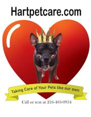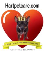 Schedule a Meet & Greet-free consultation to learn more about the needs of your pet(s) and Hart Petcare services. Contact us at (216) 403-0954 or frederickthart@gmail.com